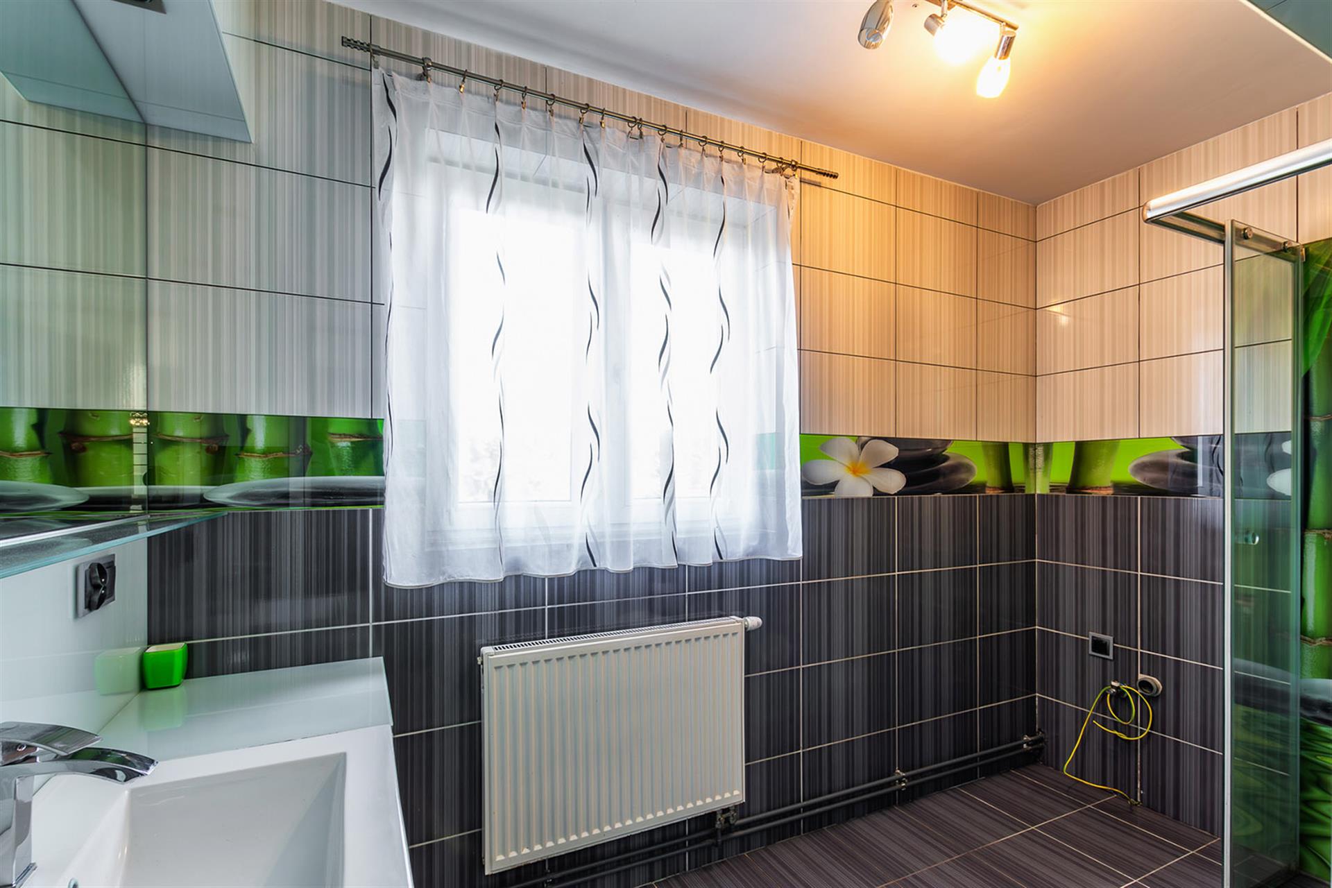 Parter składa się z dużego salonu z kominkiem, przestronnej kuchni, pokoju i łazienki z kabiną prysznicową.