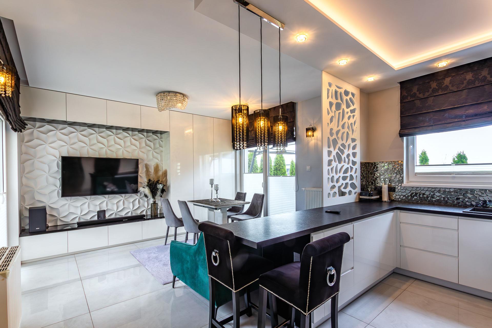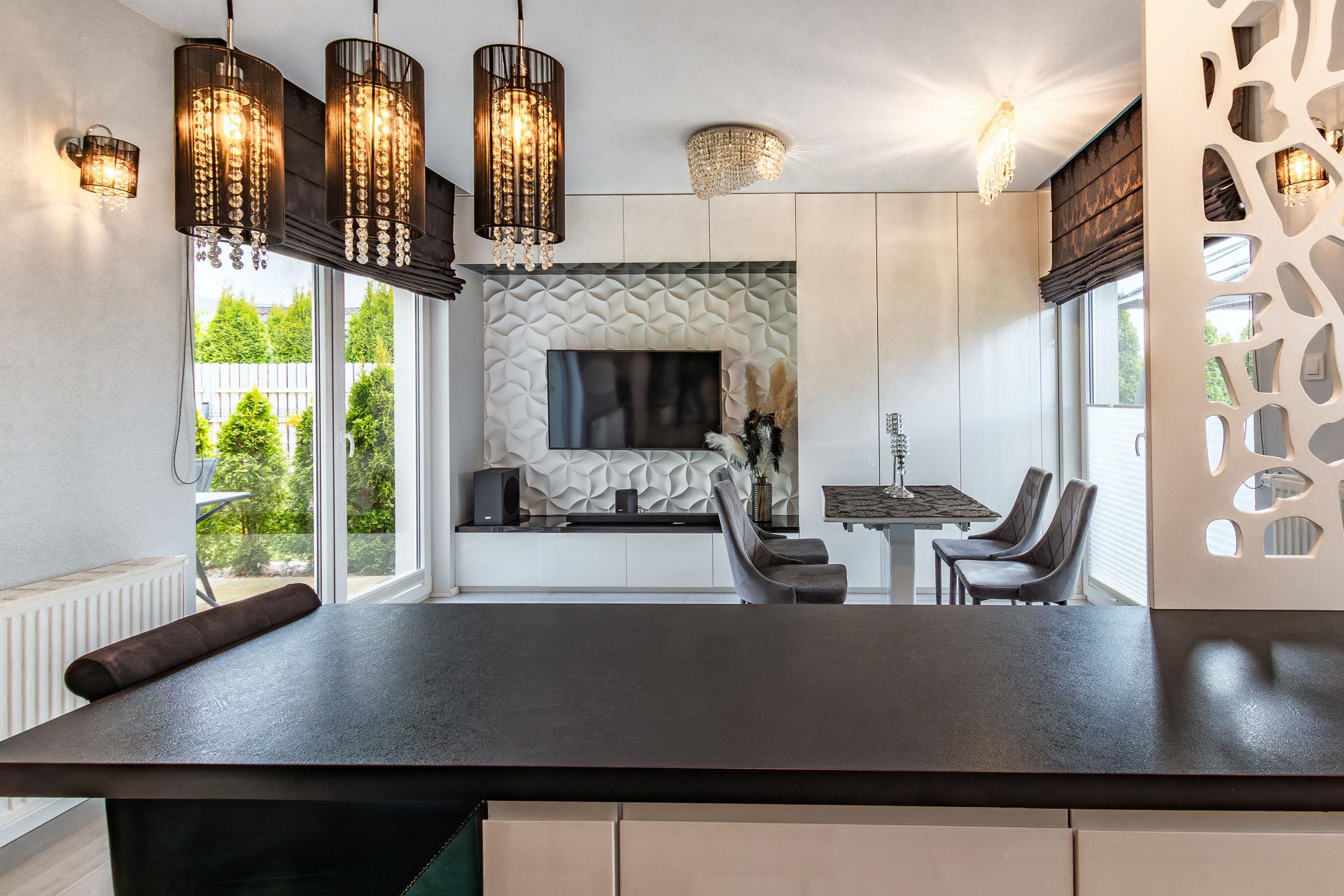 Wnętrza domu zaprojektowane w niepowtarzalnym stylu przez projektanta.