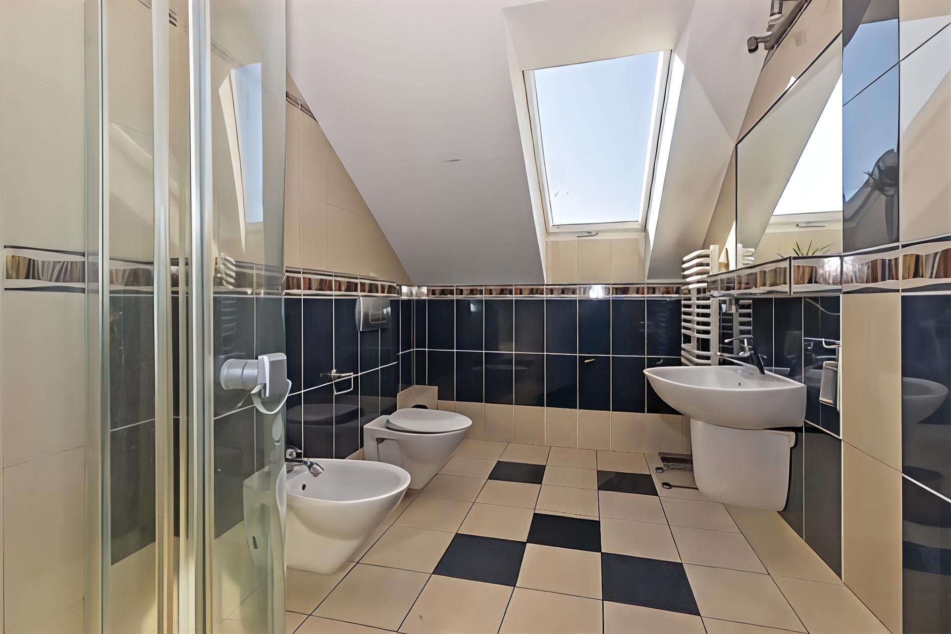 - Mieszkanie o pow. 170 m2; salon z kuchnią i jadalnią, 3 pokoje, sypialnia z łazienką, spiżarnia, łazienka, hall.