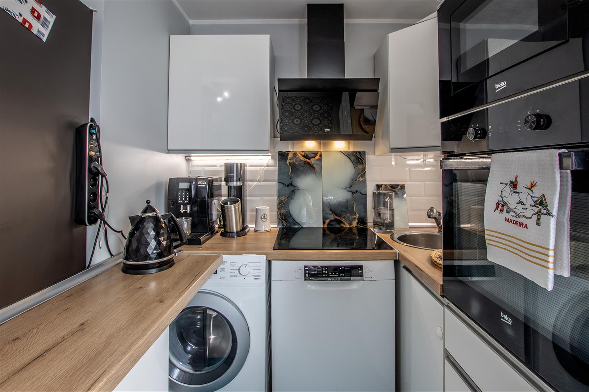 W cenie: zabudowa kuchenna, płyta ceramiczna, piekarnik, mikrofala, kominek elektr., zmywarka, pralka.