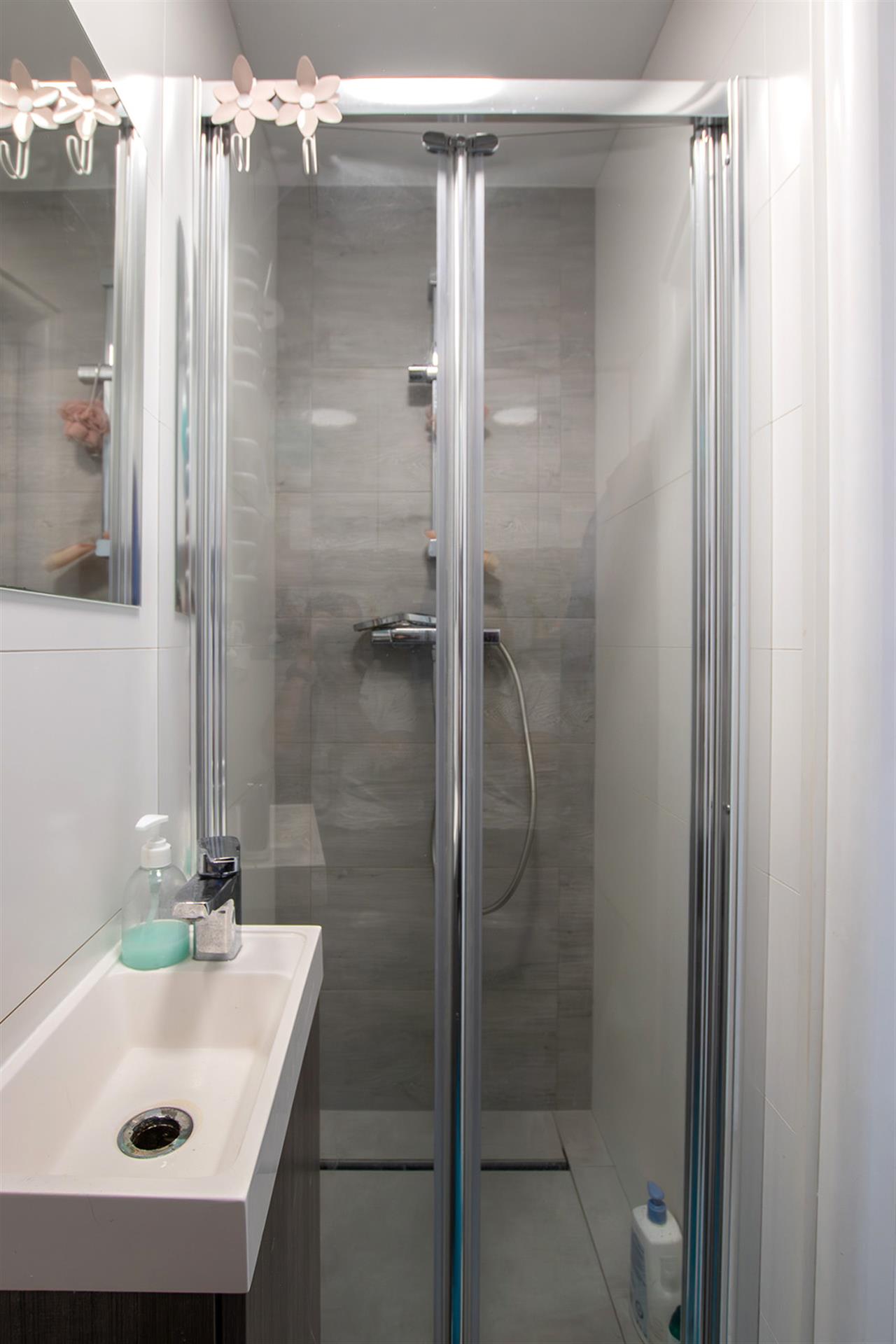 Okno PCV; podłogi w pokojach - panele, terakota; w łazience glazura, terakota, kabina natryskowa.