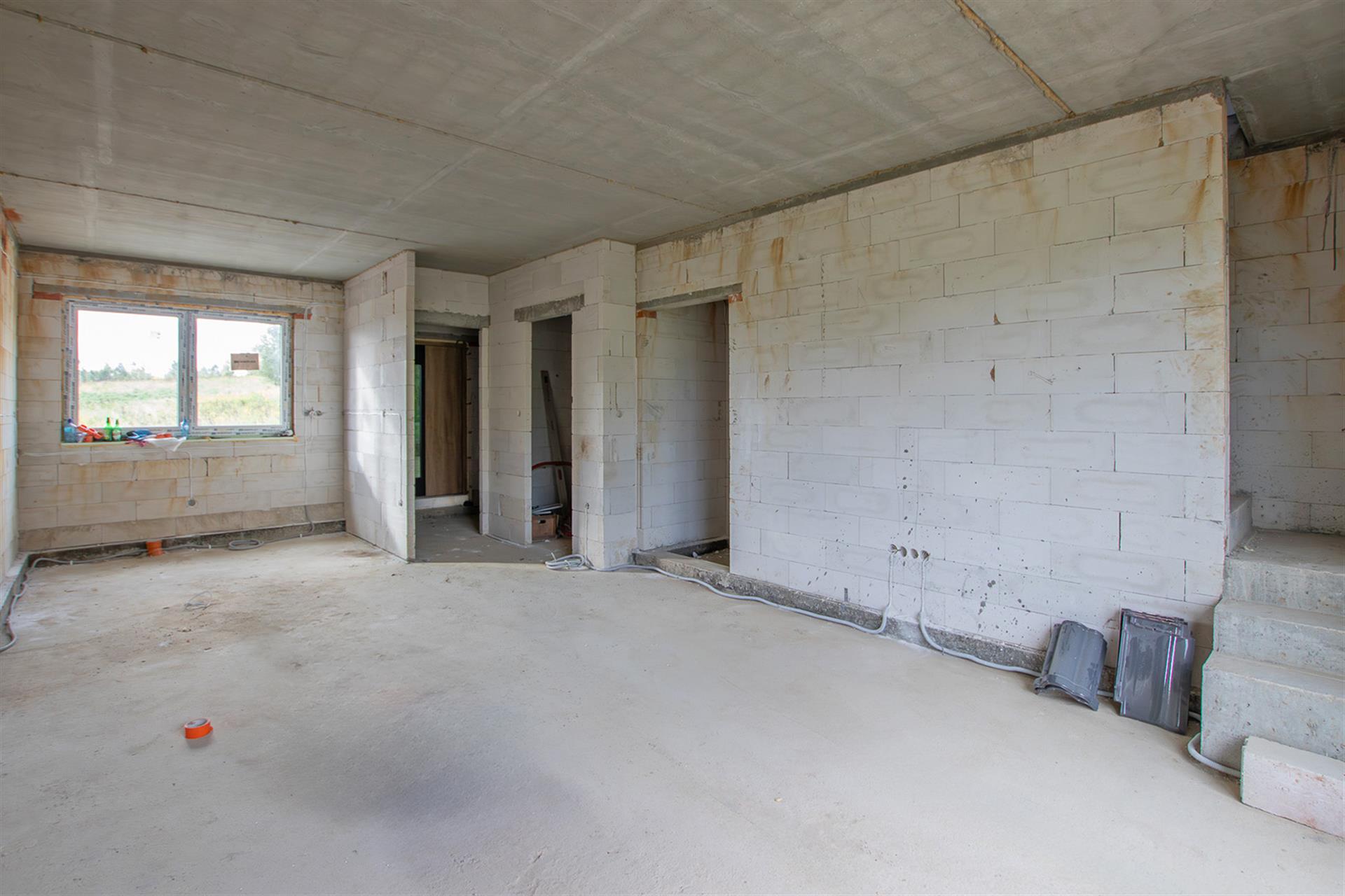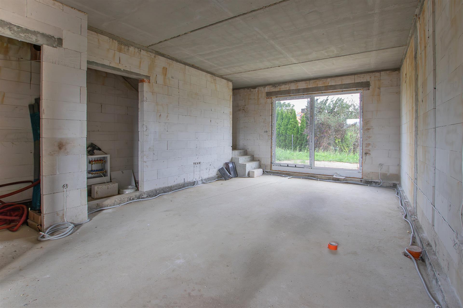 Budynek 2- kondygnacyjny z poddaszem, niepodpiwniczony - stan surowy zamknięty zadaszony.