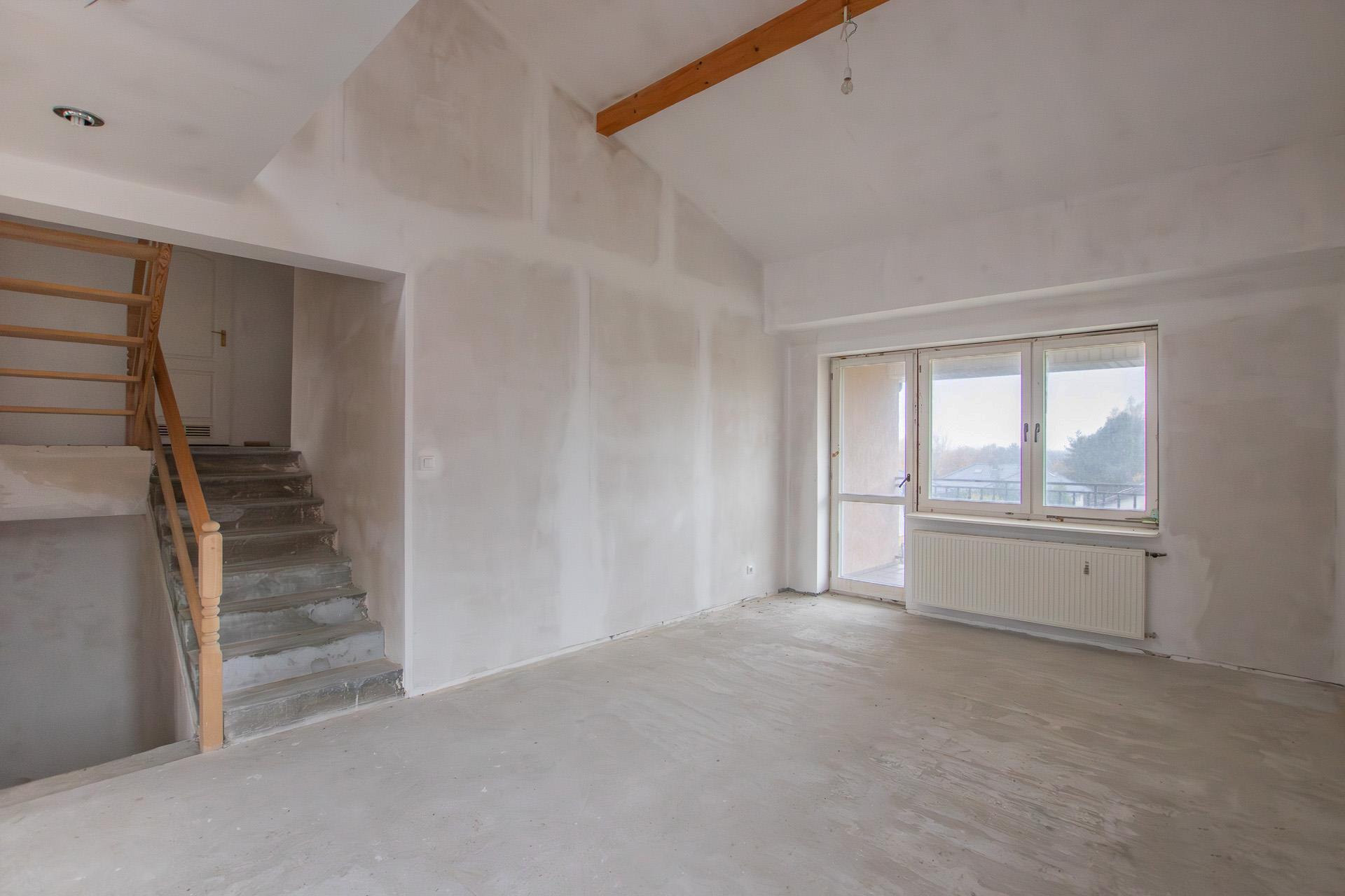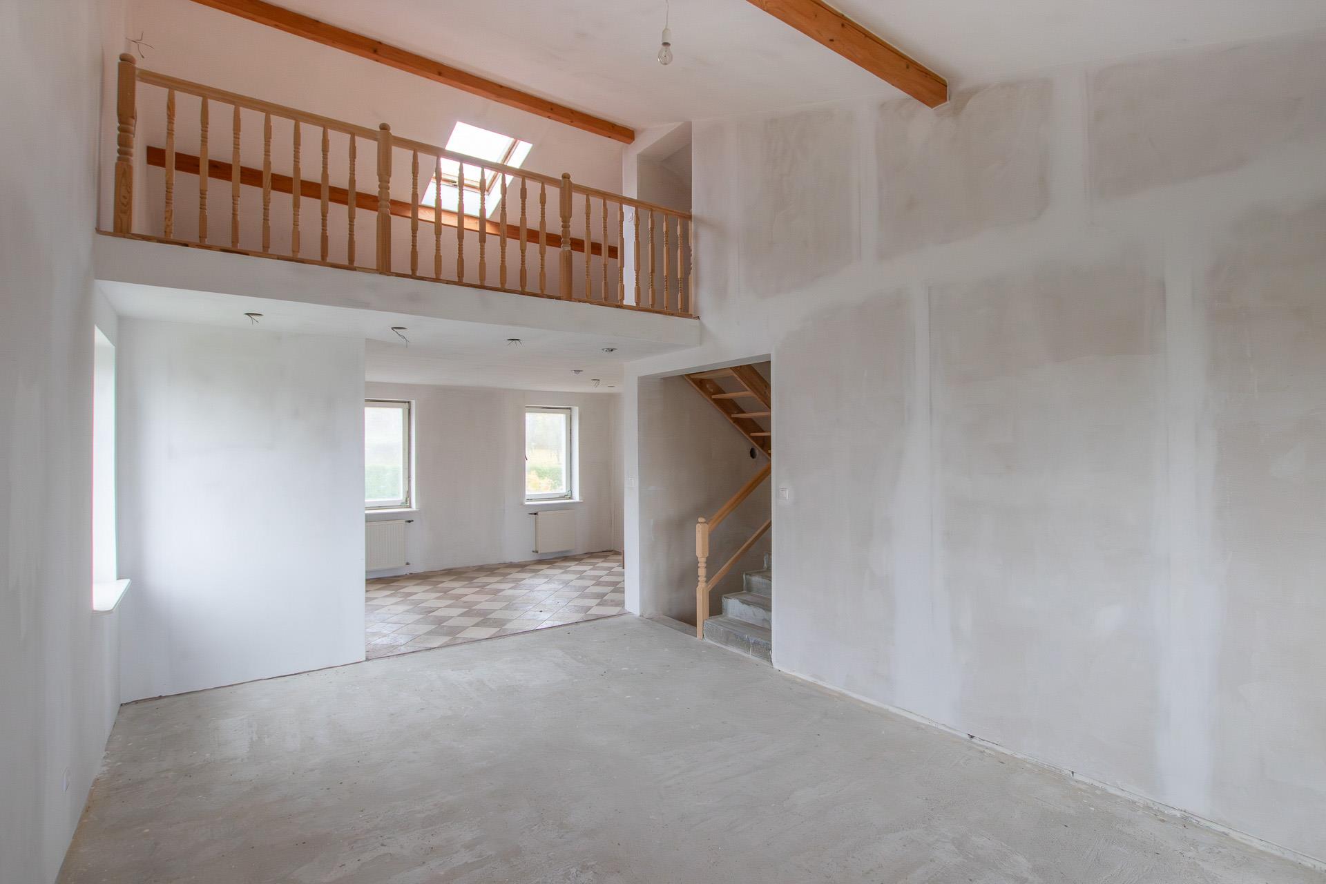 Budynek mieszkalny z garażem w zabudowie bliźniaczej do wykończenia wewnątrz.
