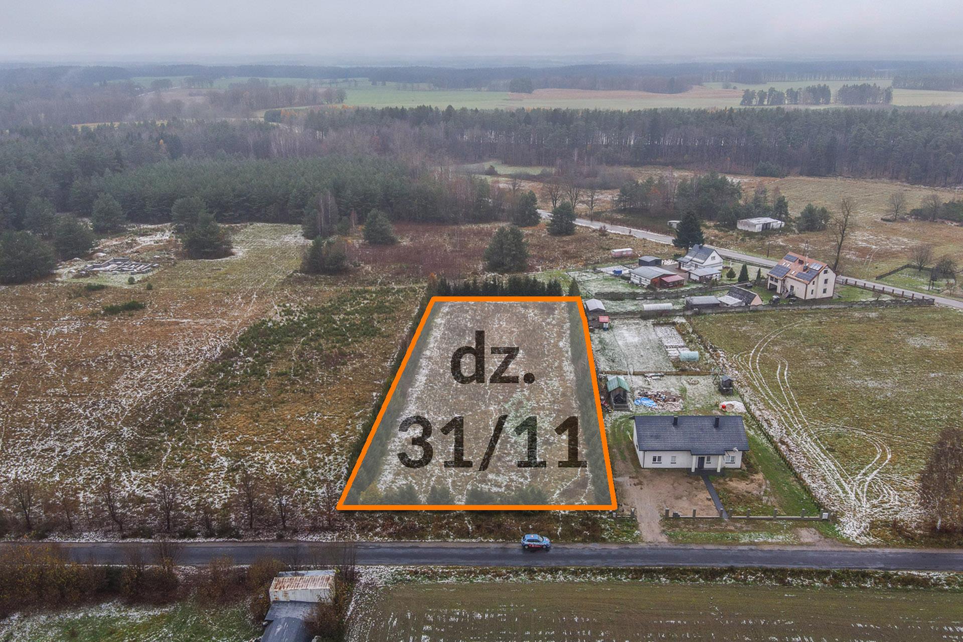 Działka położona z daleka od miejskiego zgiełku w bliskiej odległości lasów.