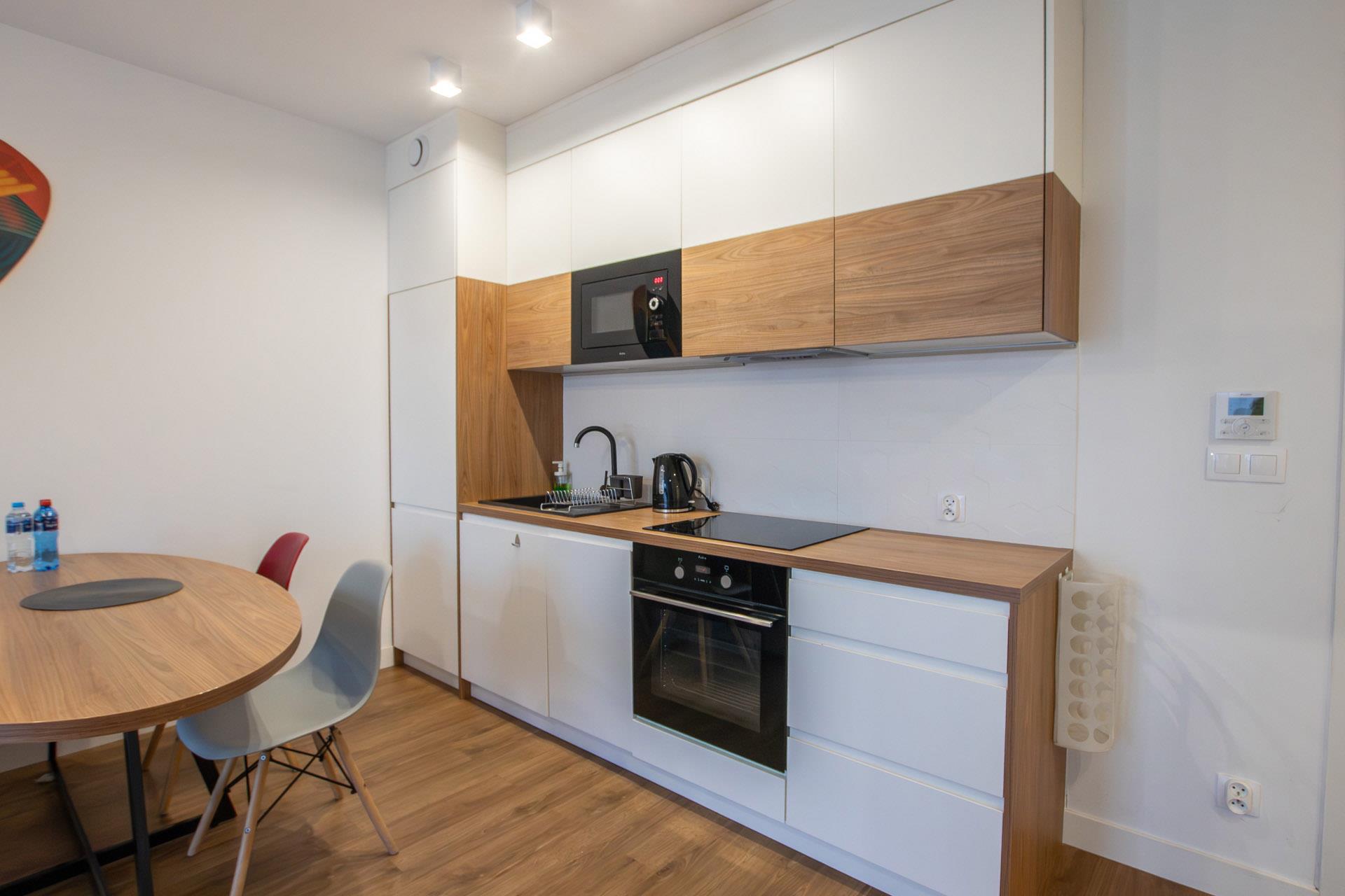 Aneks kuchenny - zabudowa kuchenna, piekarnik, płyta ceramiczna, lodówka, zmywarka.