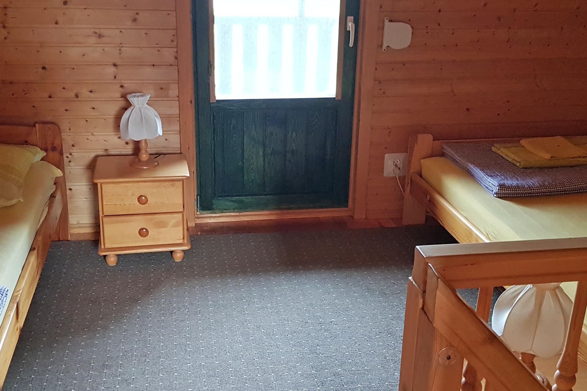 Domki turystyczne konstrukcji drewnianej, dach ocieplony wełną mineralną, pokryty blachodachówką.
