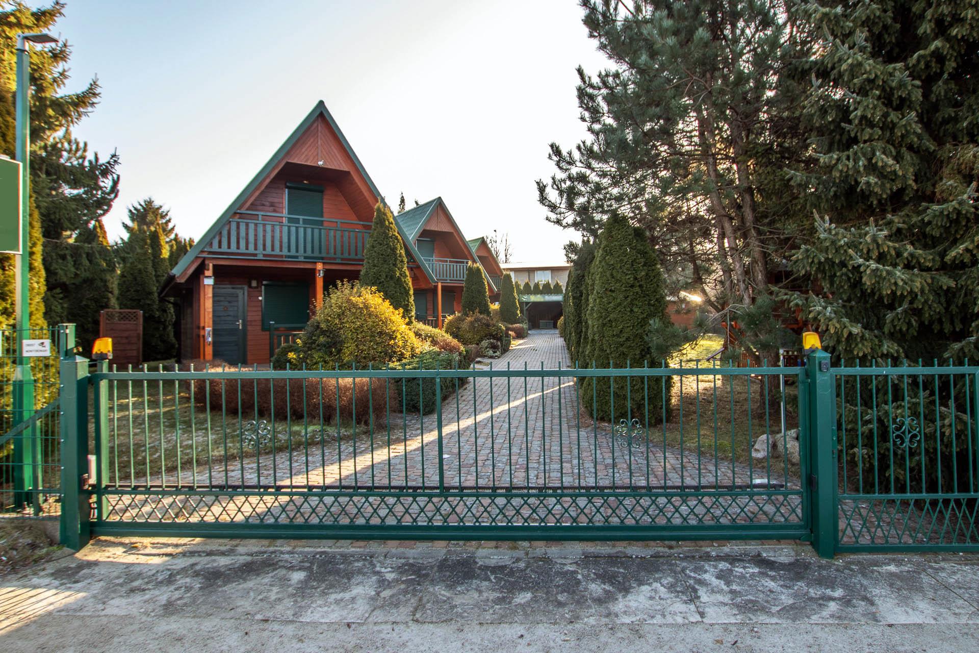Domki parterowe z poddaszem, konstrukcji drewnianej, dach pokryty blachodachówką.