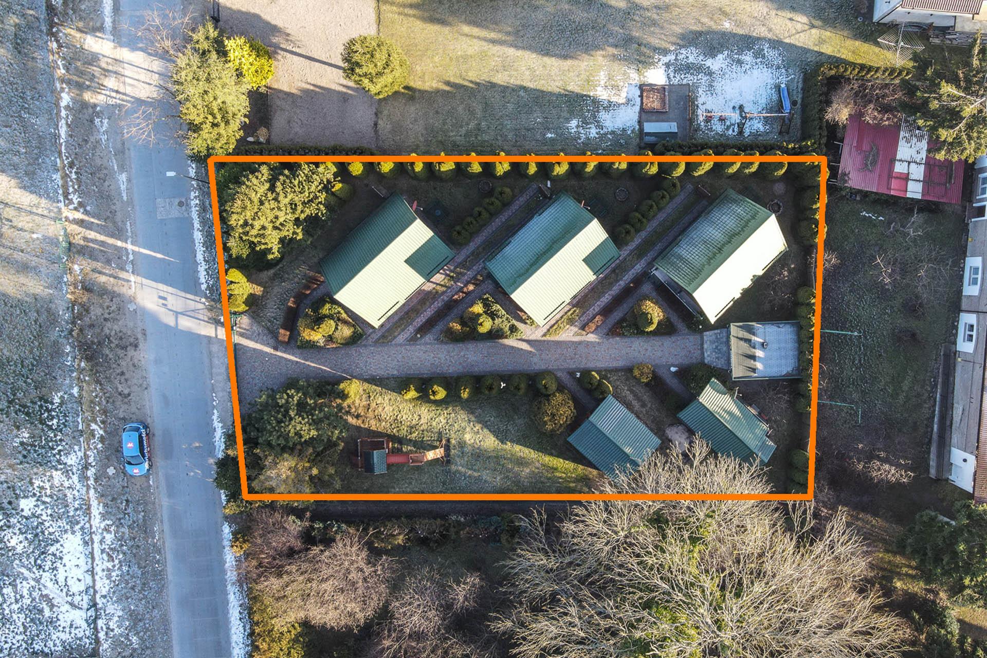 Nieruchomość zabudowana kompleksem 3- domków turystycznych oraz domkiem mieszkalnym i gospodarczym.
