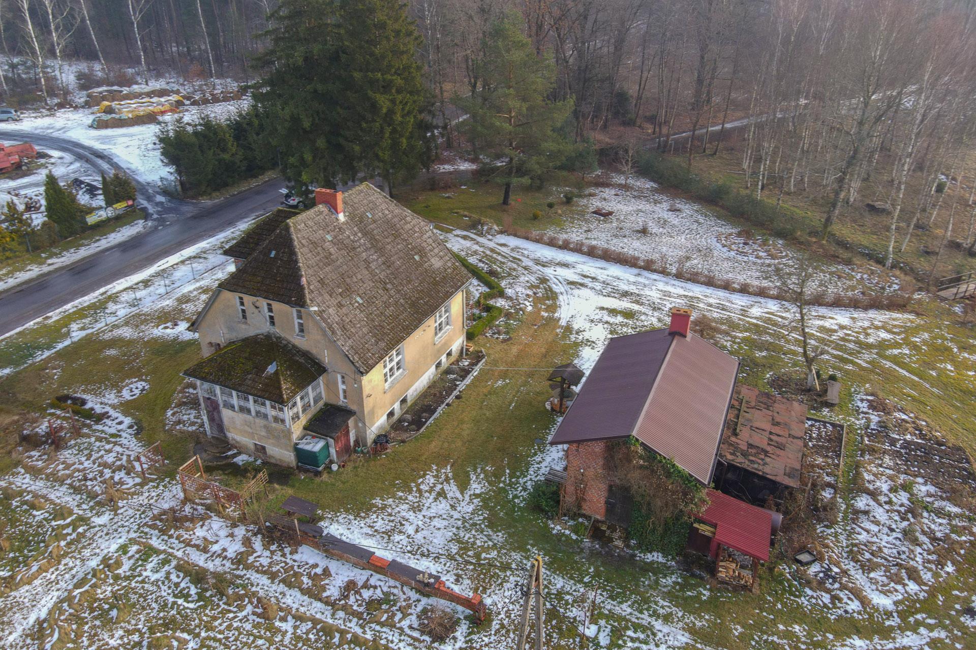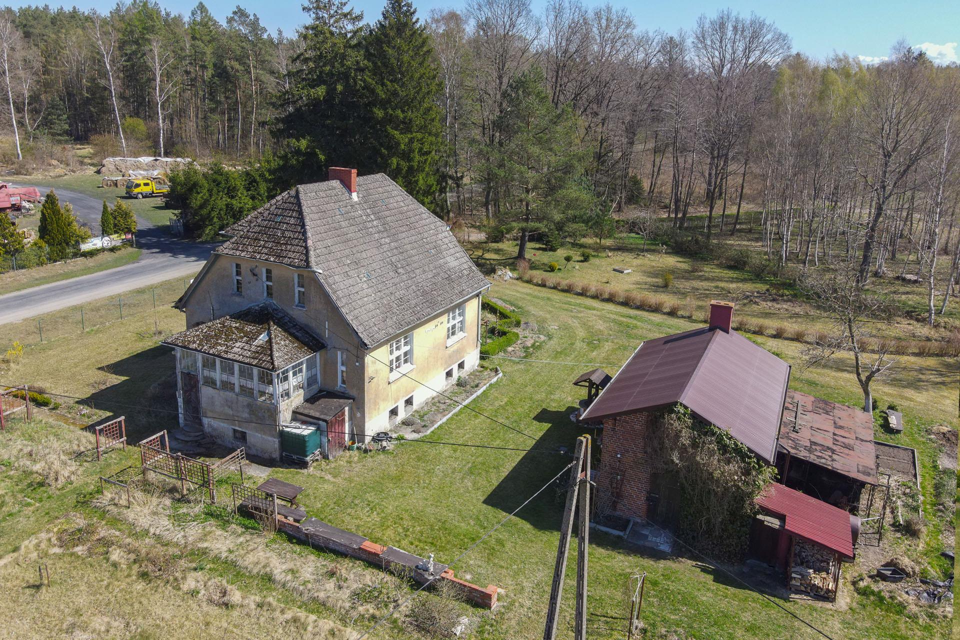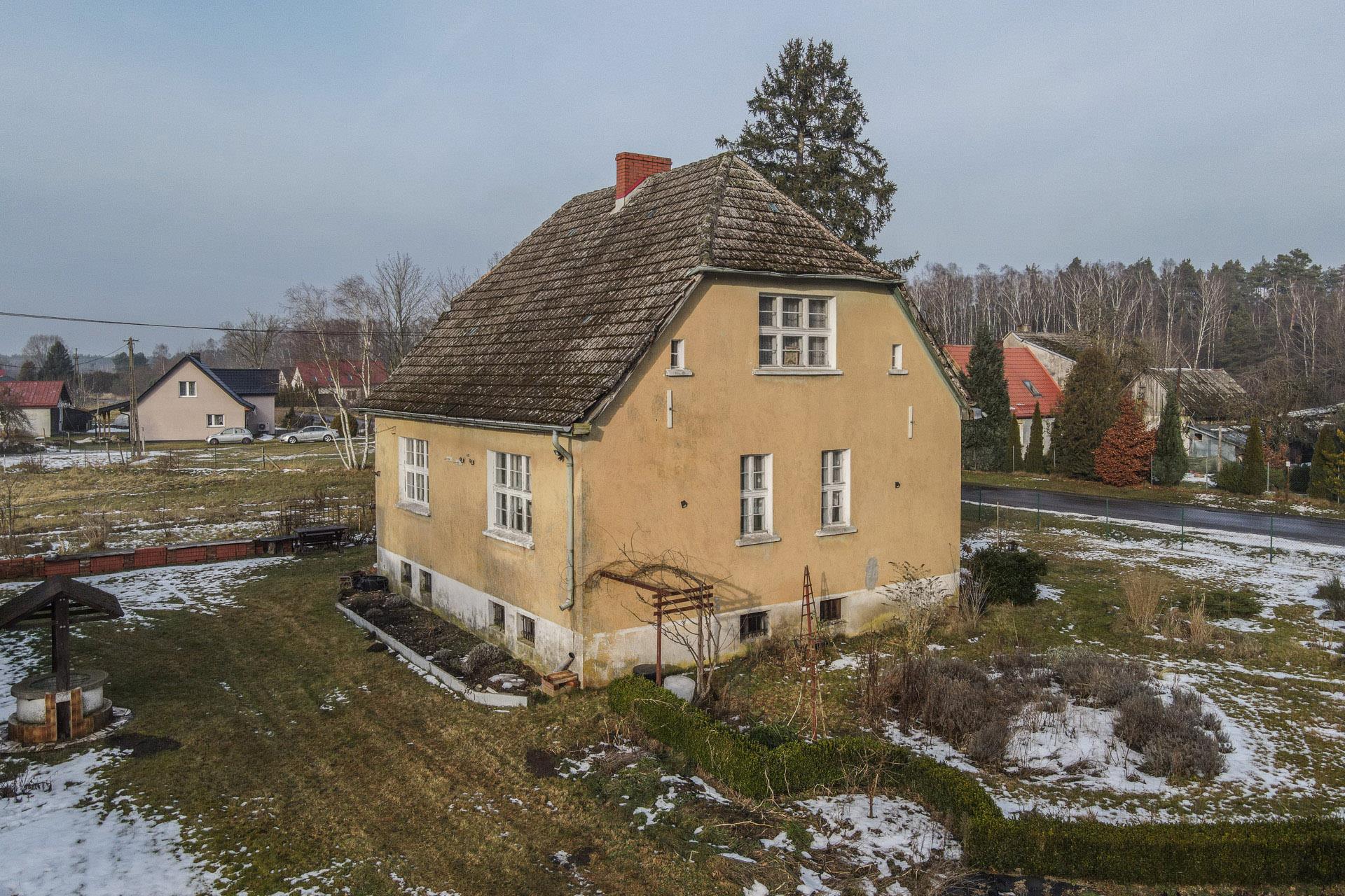 Budynek mieszkalny o pow. użytkowej 117 m2; przedwojenny, parterowy z poddaszem, podpiwniczony.