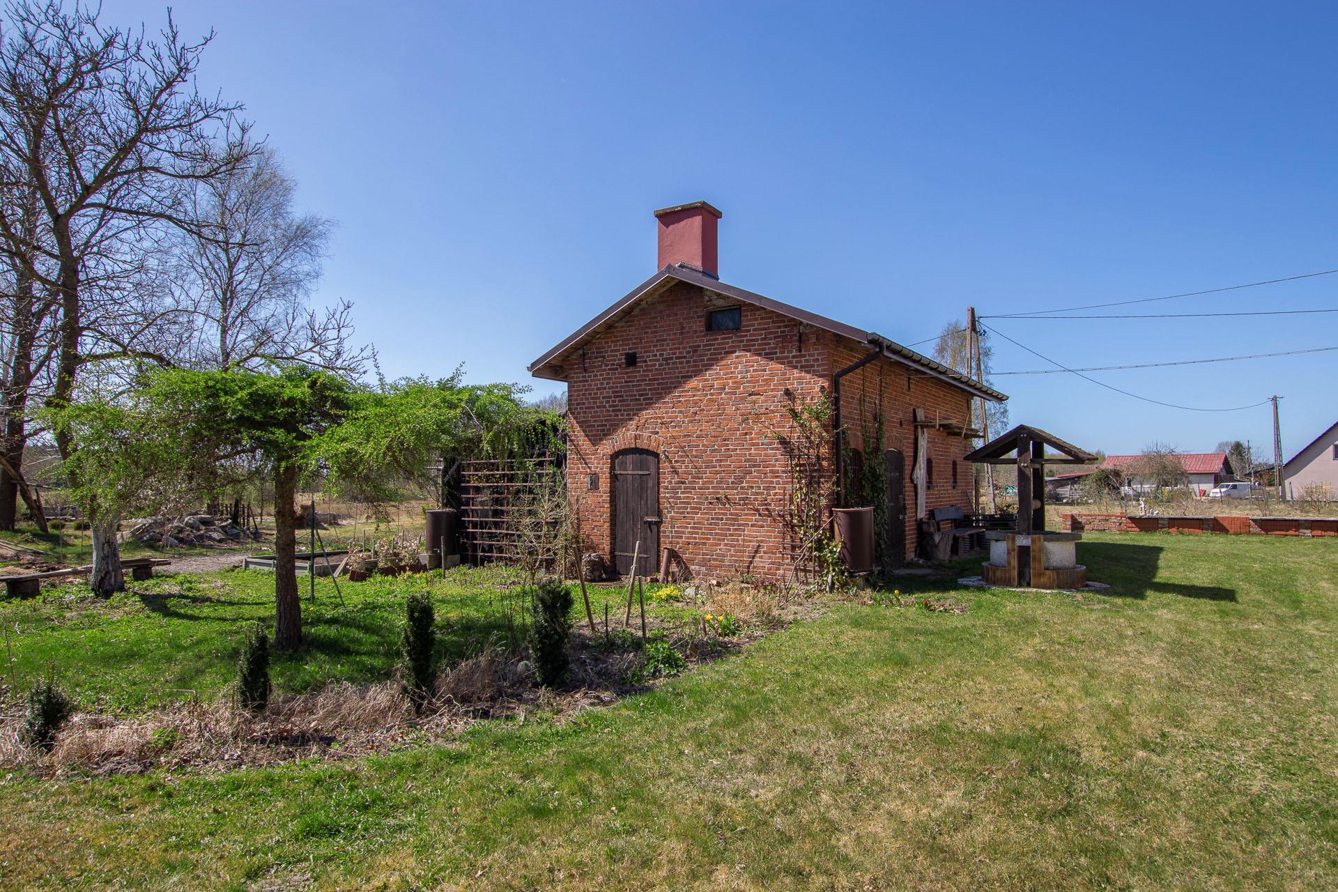 Budynek gospodarczy o pow. użytk. 18 m2, murowany, parterowy, dach pokryty blachą trapezową.