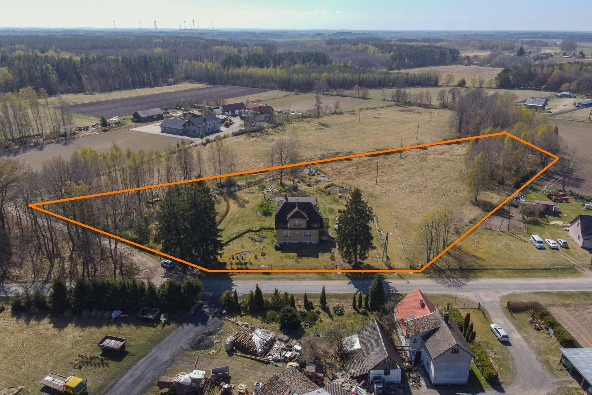 Nieruchomość zabudowana budynkiem mieszkalnym i gospodarczym na działce o pow 1,29 ha, w miejscowości Nosówko - Stajkowo, gm. Białogard.