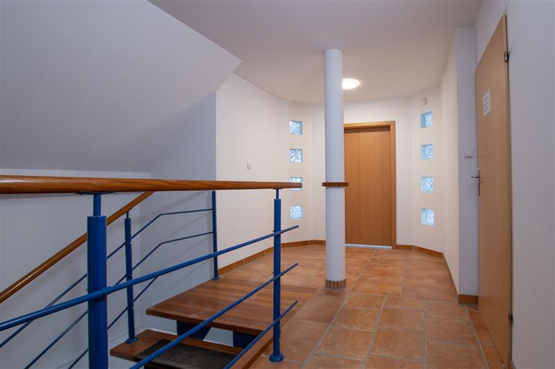 Sanitariat znajduje się na piętrze w ciągu komunikacyjnym.