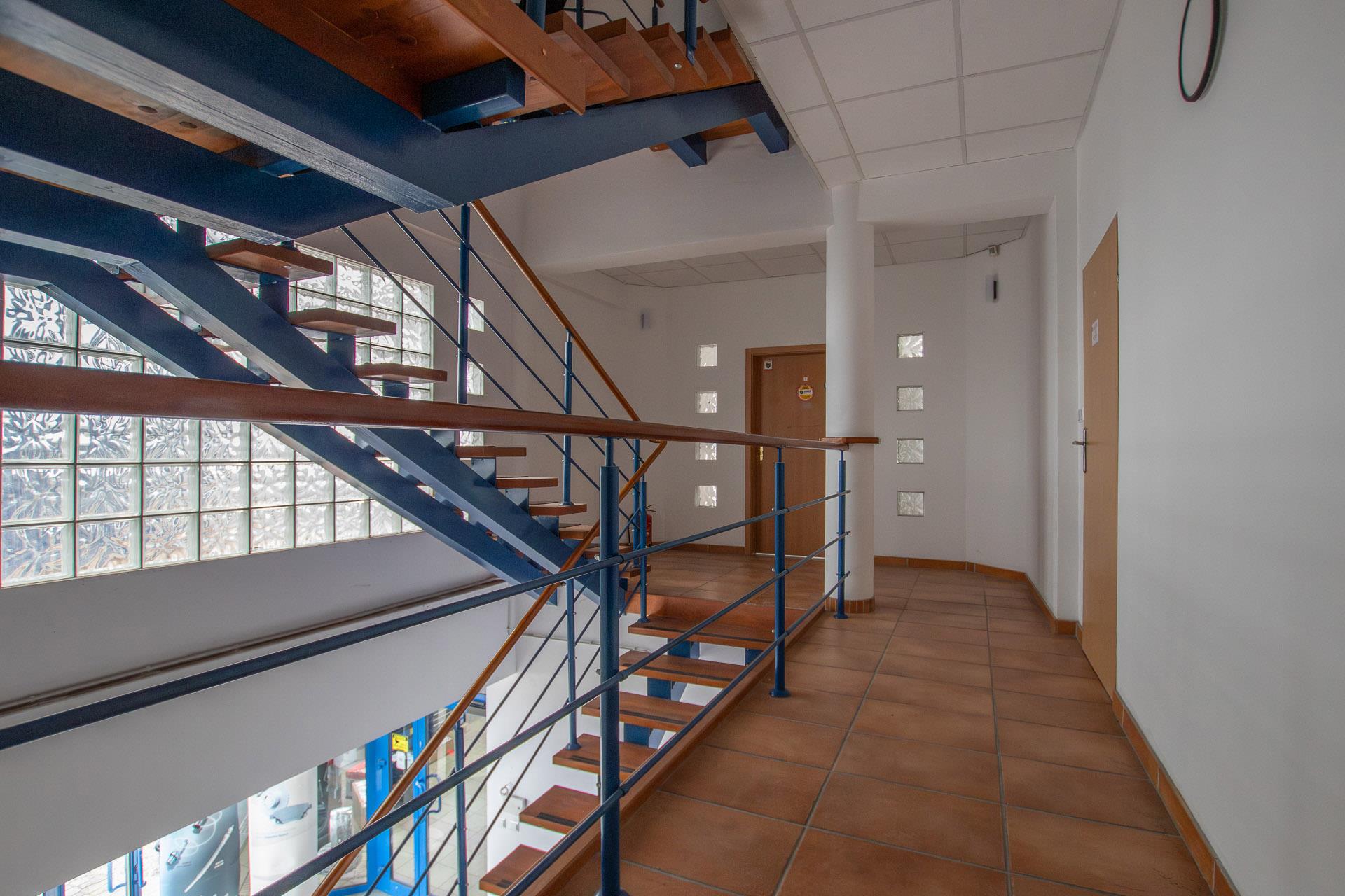 Sanitariat znajduje się na piętrze w ciągu komunikacyjnym.