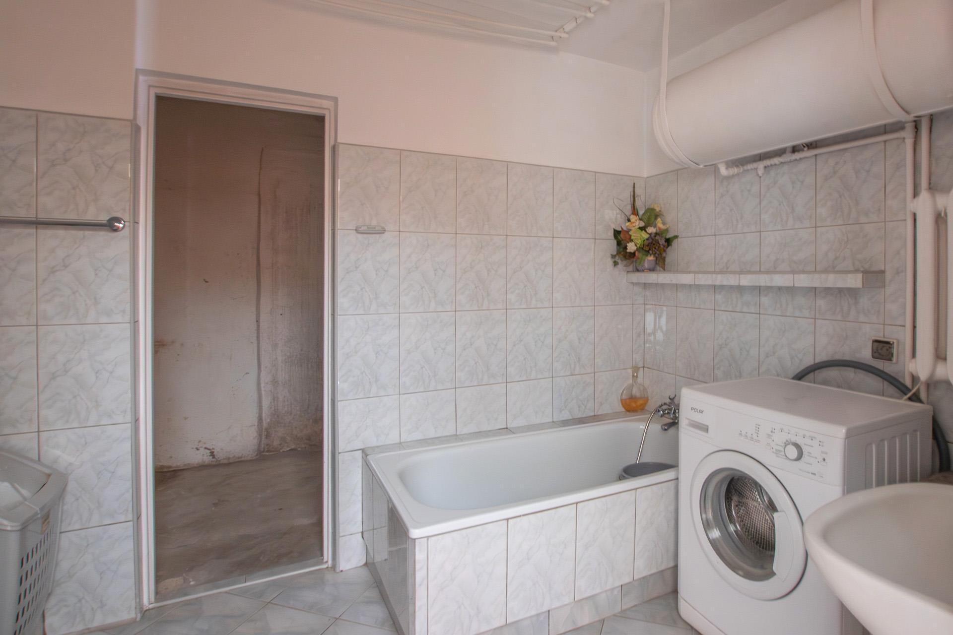 Łazienka z WC - terakota, glazura, wanna, kompakt, bojler elektryczny.
