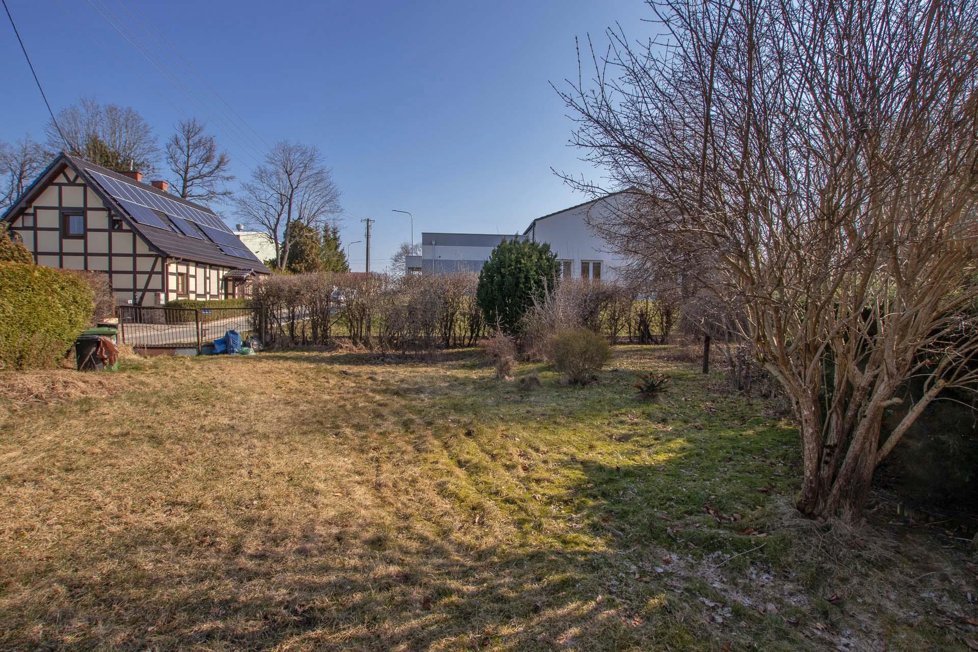 Działka o pow. 1858 m2, ogrodzona i zagospodarowana, trawniki, nasadzenia.