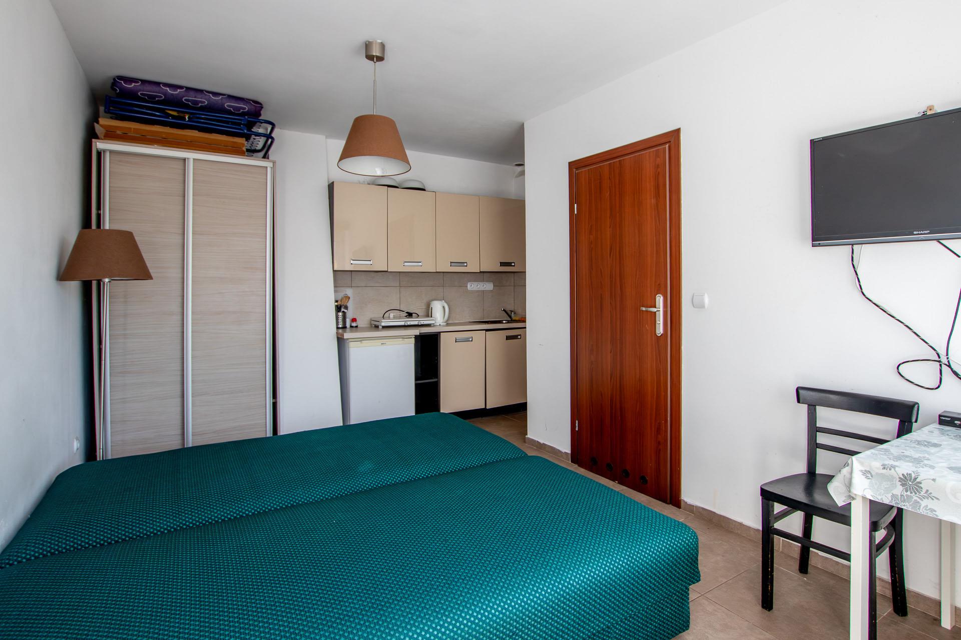 - apartament I: pokój z aneksem kuchennym i łazienka;