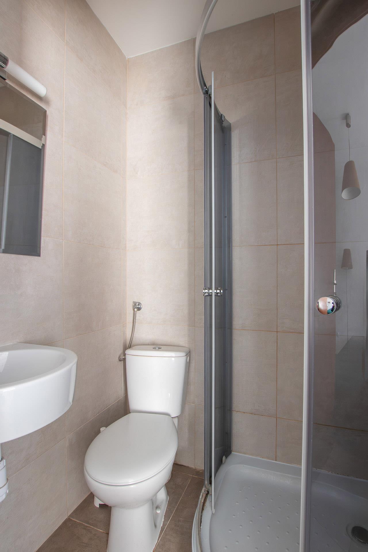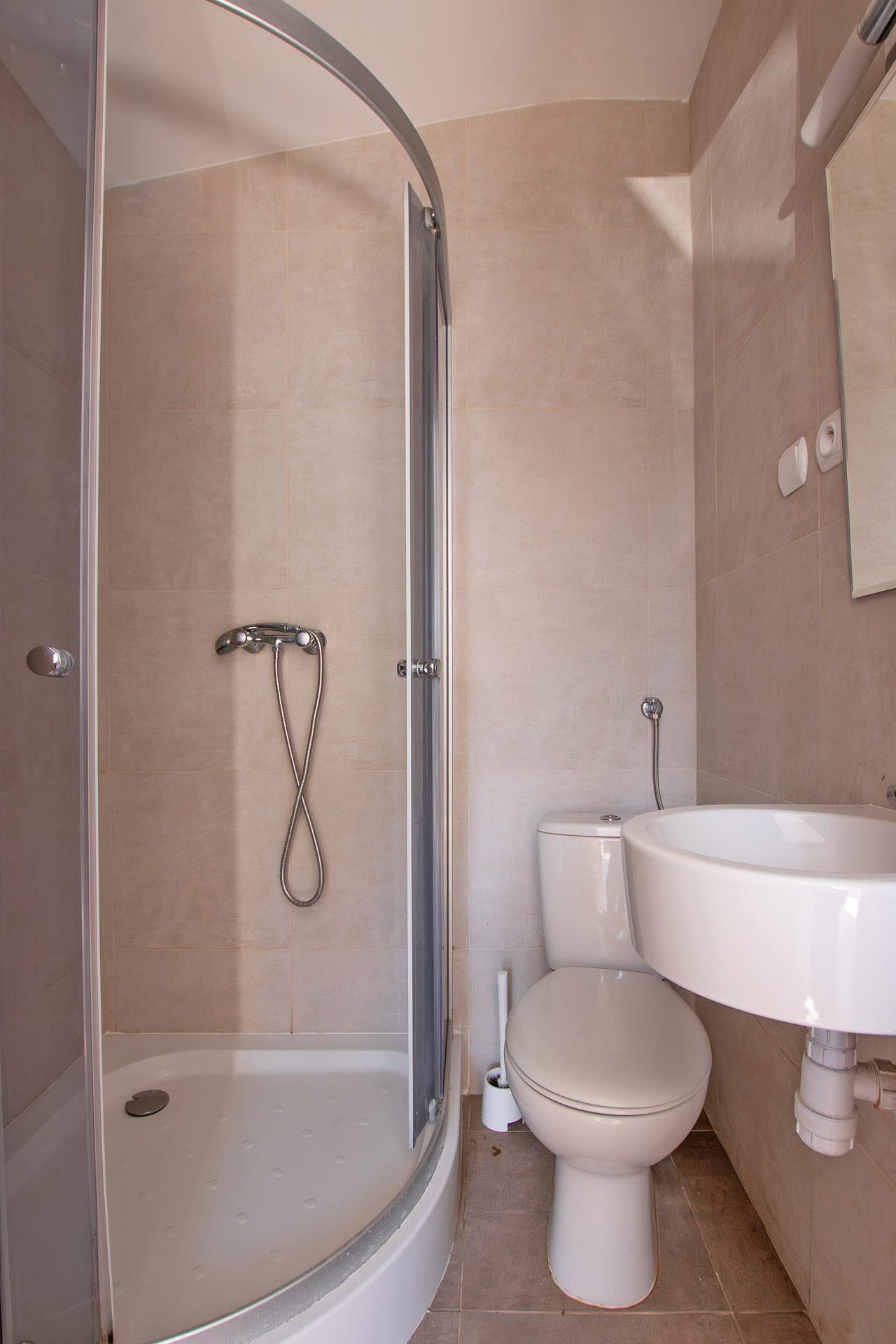 Okna PCV z roletami zewnętrznymi. W pokojach terakota, w łazienkach kabiny natrysk.