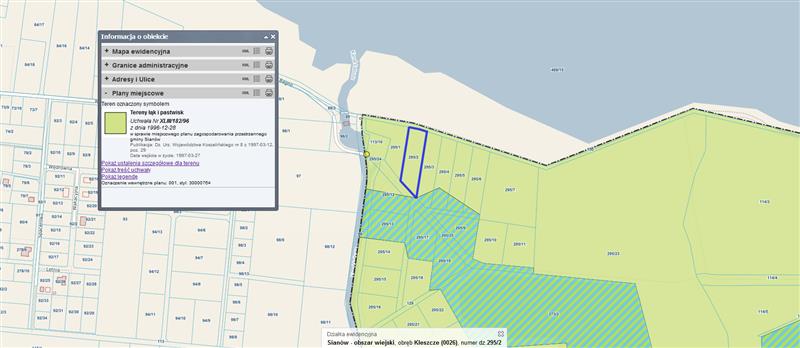 W aktualnym planie zagospodarowania przestrzennego Gminy i Miasta Sianów przeznaczenie stanowi w części teren upraw rolnych i łąk i pastwisk klasy III i IV., rodzaj użytków Ł/W.