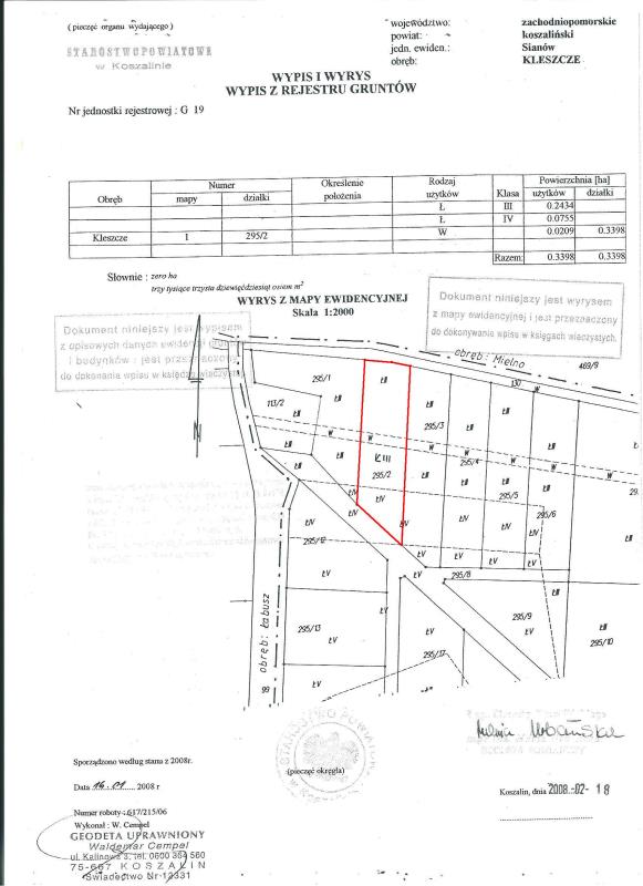 Pięknie położona działka o pow. 3398 m2 w cichej i spokojnej okolicy blisko jeziora Jamno.