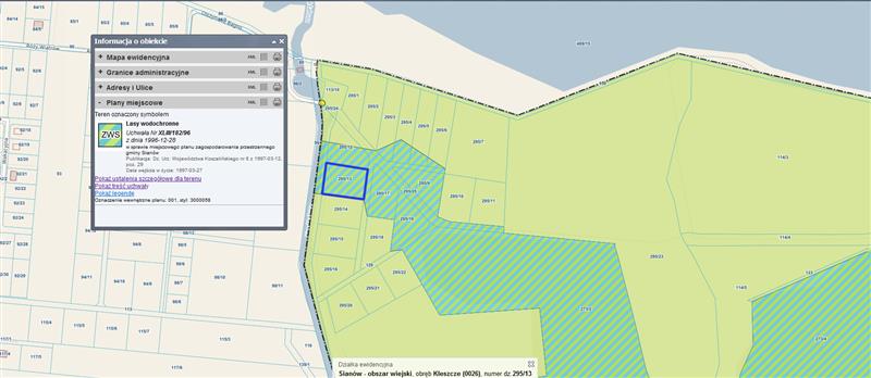 W aktualnym planie zagospodarowania przestrzennego Gminy i Miasta Sianów przeznaczenie stanowi w części teren upraw rolnych i łąk i pastwisk klasy V ,rodzaj użytków Ł.