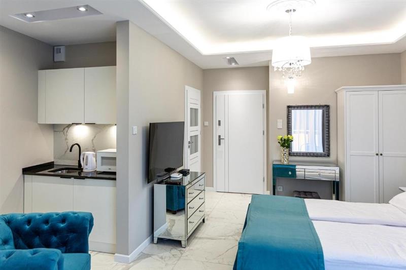 Jeden apartament ma dodatkowo balkon (pow. 4,42 m2). Apartamenty są wystawione na portalu booking w przedziale cenowym od 290-369 zł/doba.