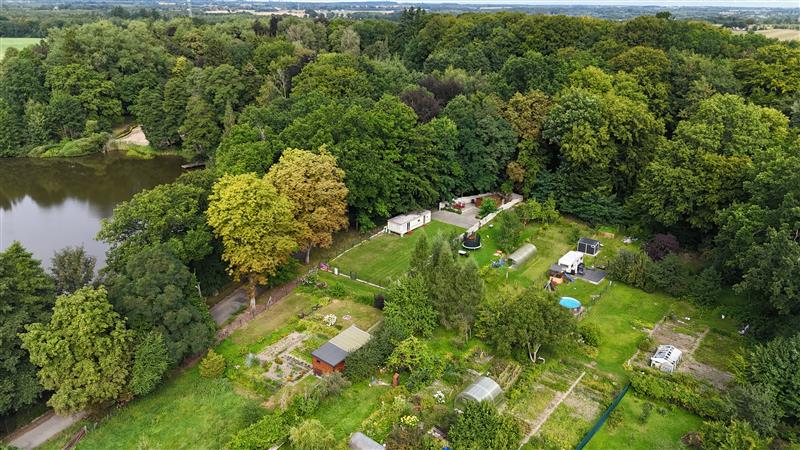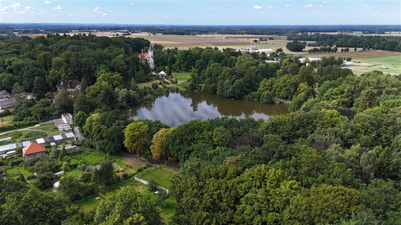 Działka w pobliżu alei pałacowej, z osobną bramą wjazdową, ogrodzona, otoczona drzewami. Na terenie domek holenderski, wybrukowany podjazd, nowoczesny garaż/szopa ogrodowa, zestaw wypoczynkowy. Wszystkie media: prąd, woda, szambo. Z działki widok na staw i Bursztynowy Pałac (https://pl.wikipedia.org/wiki/Pa%C5%82ac_w_Strzekecinie).