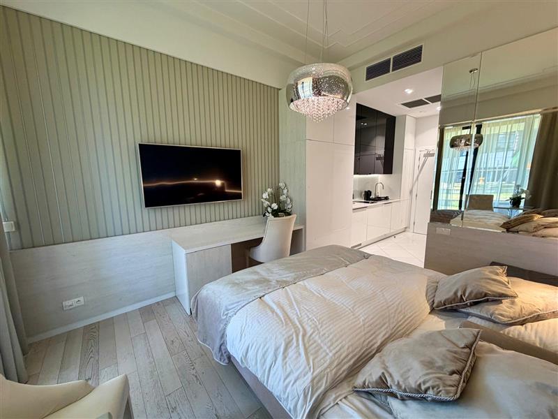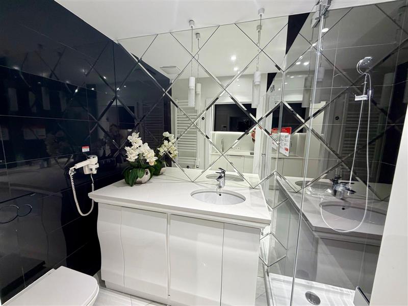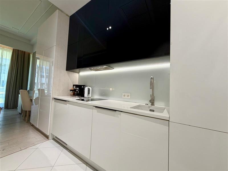 Apartament składa się z komfortowego salonu z aneksem kuchennym oraz stylowo wykończonej łazienki. Przemyślany układ i elegancka aranżacja sprawiają, że przestrzeń jest funkcjonalna i przytulna.