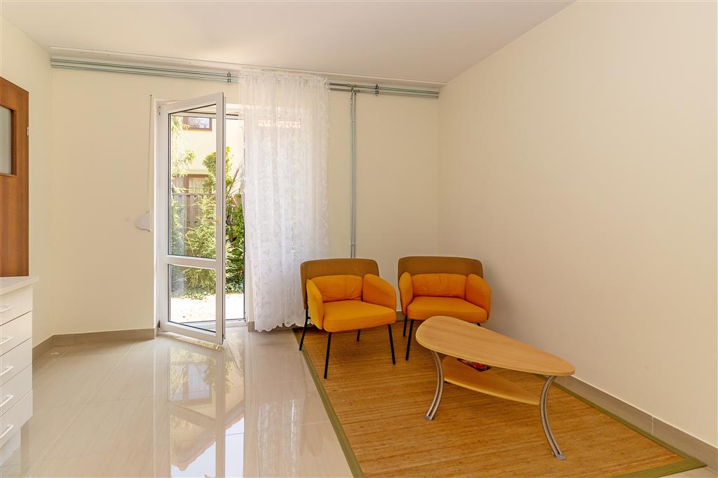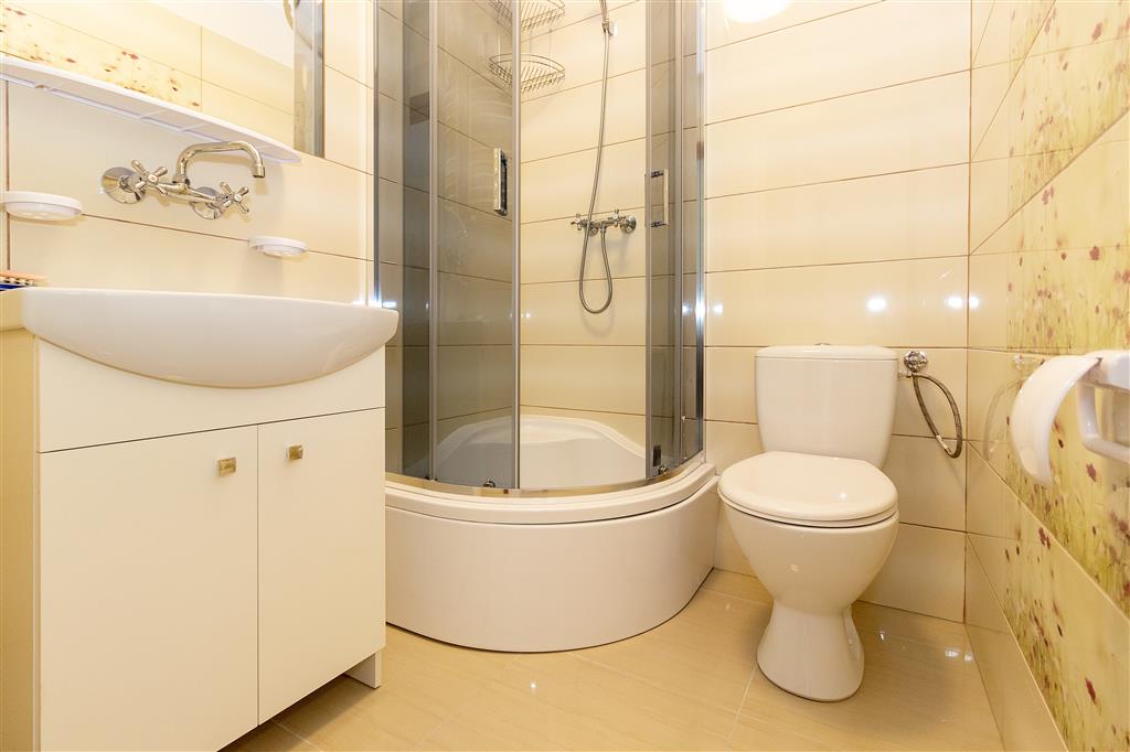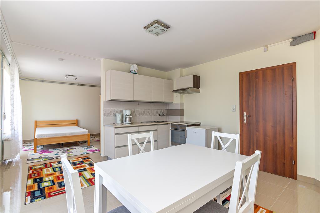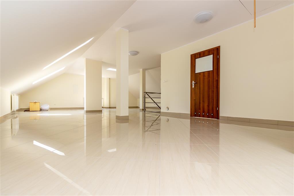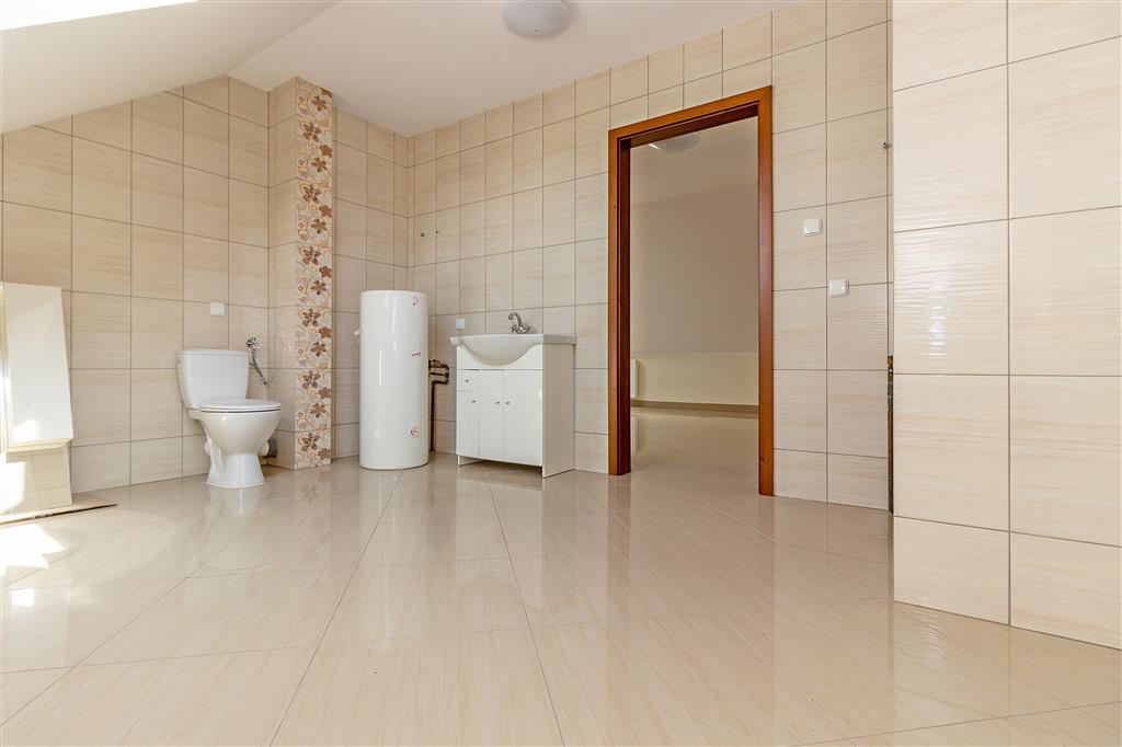 - Budynek dwukondygnacyjny z 2019r. o łącznej powierzchni 240 m2. Na parterze znajduje się przestronny hall, który prowadzi do 3 apartamentów oraz pokoju z aneksem kuchennym i łazienką oraz kotłownia - pomieszczenie gospodarcze, którym znajduje się kocioł gazowy wraz z zasobnikiem na wodę. Na poddaszu znajduje się duża, otwarta przestrzeń umożliwiająca zaaranżowanie na mieszkanie, miejsce wypoczynkowe, biuro, itp. oraz łazienka. Budynek ogrzewany jest za pomocą kotła gazowego dwufunkcyjnego, co czyni go obiektem całorocznym. Dodatkowo w hallu znajduje się kominek, który posiada nadmuch ciepłego powietrza na część pomieszczeń.