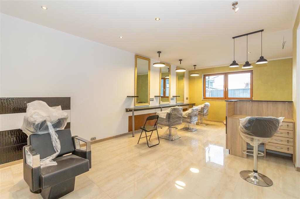 Lokal usytuowany jest na parterze i posiada przypisane 3 miejsca postojowe. Składa się z dużej sali z recepcją i częścią socjalną na końcu pomieszczenia oraz łazienki z wc.