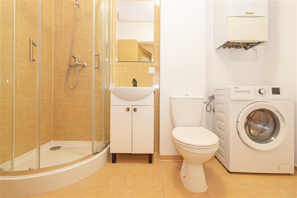 Nieruchomość składa się z ustawnego salonu połączonego z kuchnią, pokoju z szafą w zabudowie, łazienki razem z wc oraz przedpokoju z dodatkową szafą.
