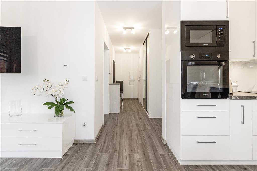 Salon z aneksem kuchennym i przedpokój to przestrzeń 29,67m2, sypialnia (z szafą w zabudowie) ma 12,20m2, łazienka (z elegancką wanną) ma 4,59m2. W mieszkaniu są 3 szybowe okna, wszystkie z roletami dzień/noc, ogrzewanie podłogowe zainstalowano w salonie, w łazience oraz w kuchni.