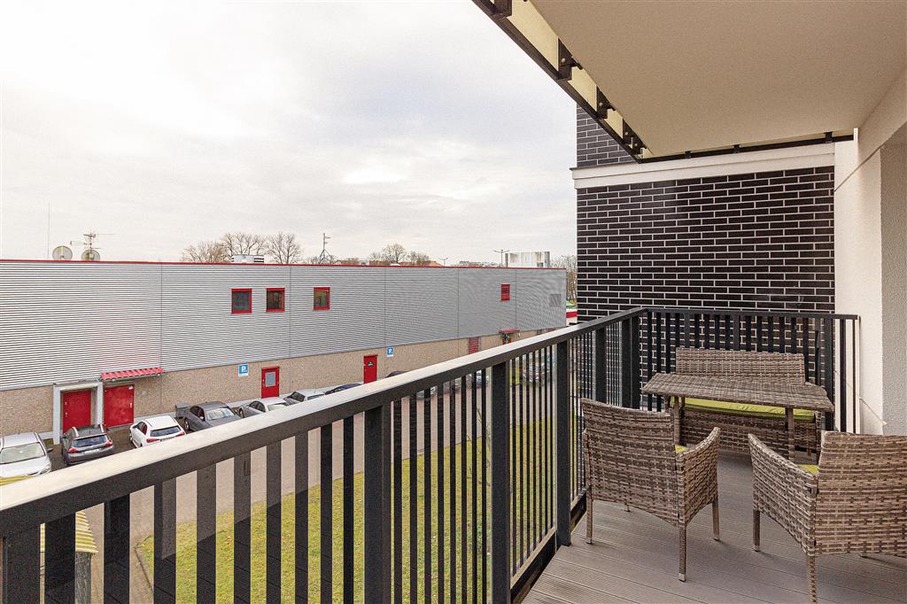 Ten nowoczesny apartament 2 pokojowy o pow. 46,46 m2 z balkonem usytuowany jest na II piętrze w budynku z windą z 2022 roku. Składa się z przedpokoju, sypialni, łazienki oraz salonu z aneksem kuchennym. Z salonu i balkonu rozciąga się bardzo ładny widok na rzekę i zieleń. Balkon łączy ze sobą salon oraz sypialnię.