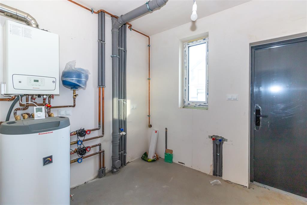 - hydraulika: ogrzewanie podłogowe (cały dół + cała góra + garaż), piec gazowy dwufunkcyjny IMMERGAS + zasobnik wody 125litrów;