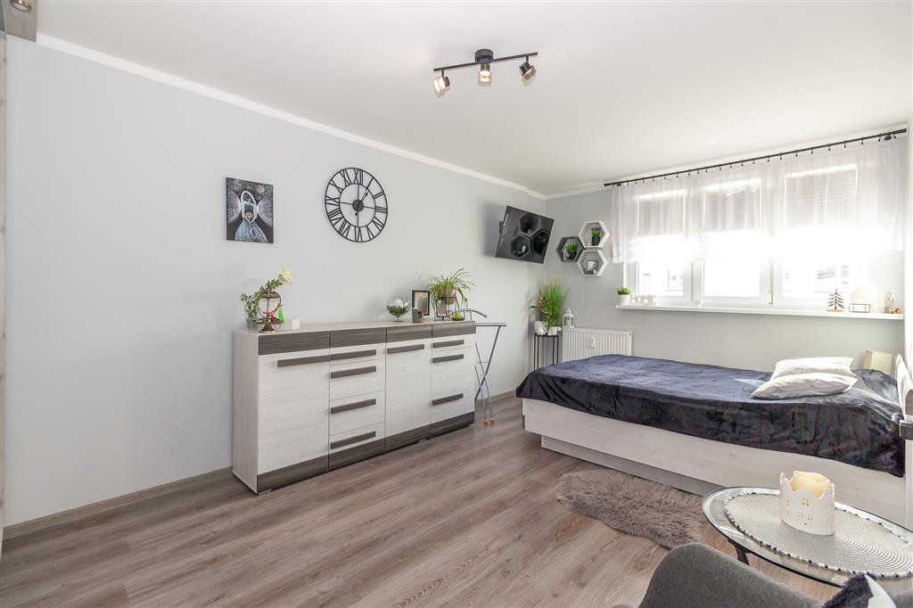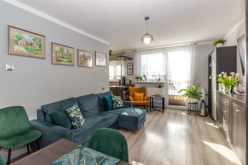 Nieruchomość składa się z salonu z wyjściem na balkon, bardzo dużej sypialni, łazienki, kuchni z oknem i przedpokoju o łącznej powierzchni 47,25m2.
