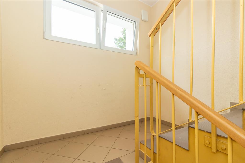 Mieszkanie położone jest na II piętrze czteropiętrowego bloku i składa się z przedpokoju, z którego wchodzimy do pozostałych pomieszczeń: salonu z przejściem do kuchni z oknem, sypialni i łazienki - łączna powierzchnia użytkowa to 33,03m2.