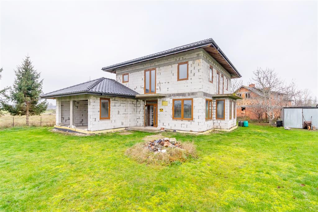 Poniemiecki dom wolnostojący o pow. 80,67m2, posadowiony na dużej działce (6,59ha) z zabudowaniami gospodarczymi. Parterowy, czteropokojowy z gospodarczym poddaszem - istnieje możliwość podniesienia o dwa stopnie ścianki kolankowej, by uzyskać pełną wysokość na poddaszu. Zbudowany z cegły, okna drewniane, na dachu eternit. Niepodpiwniczony, w stanie technicznym do kapitalnego remontu.