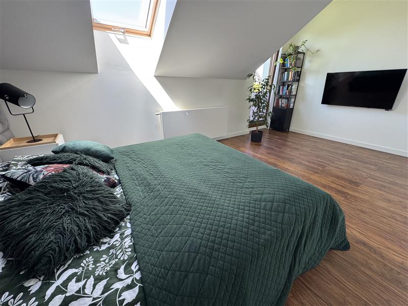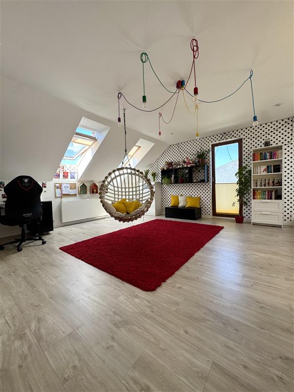 Strych z oknem wyłazowym – przestronny, dobrze ocieplony (20 cm wełny), może służyć jako schowek.