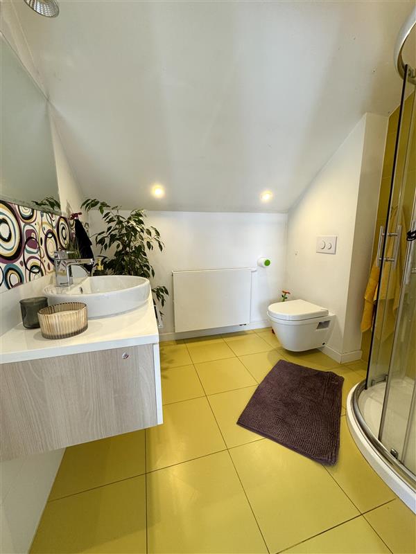 Łazienka z WC i prysznicem o pow. 3,2m2– wygodne rozwiązanie dla gości oraz domowników; funkcjonalna jako druga łazienka.