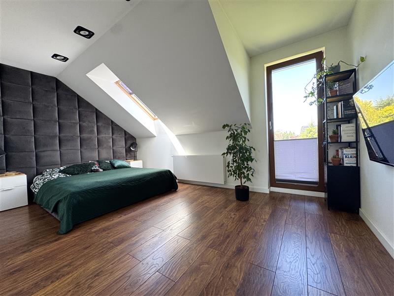 Duży pokój o powierzchni całkowitej ok. 37,60 m2 – z własną, prywatną łazienką o pow. 4,40 m2. Może pełnić funkcję głównej sypialni małżeńskiej lub pokoju starszego dziecka