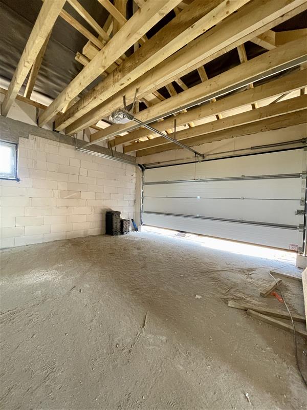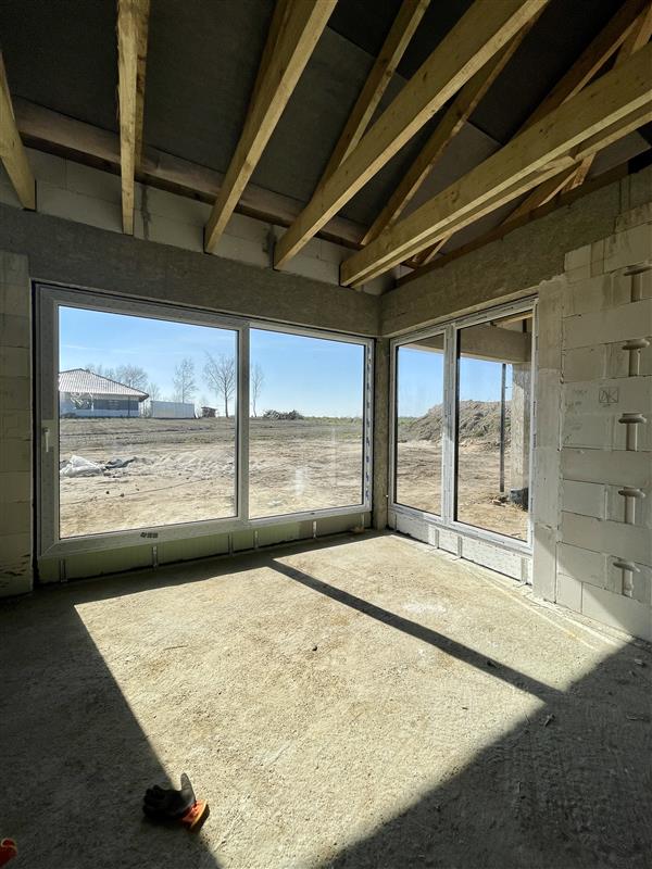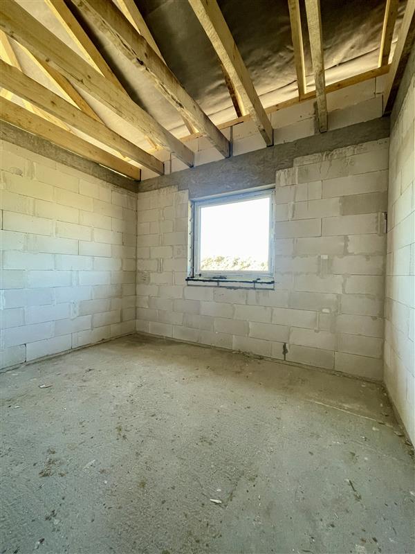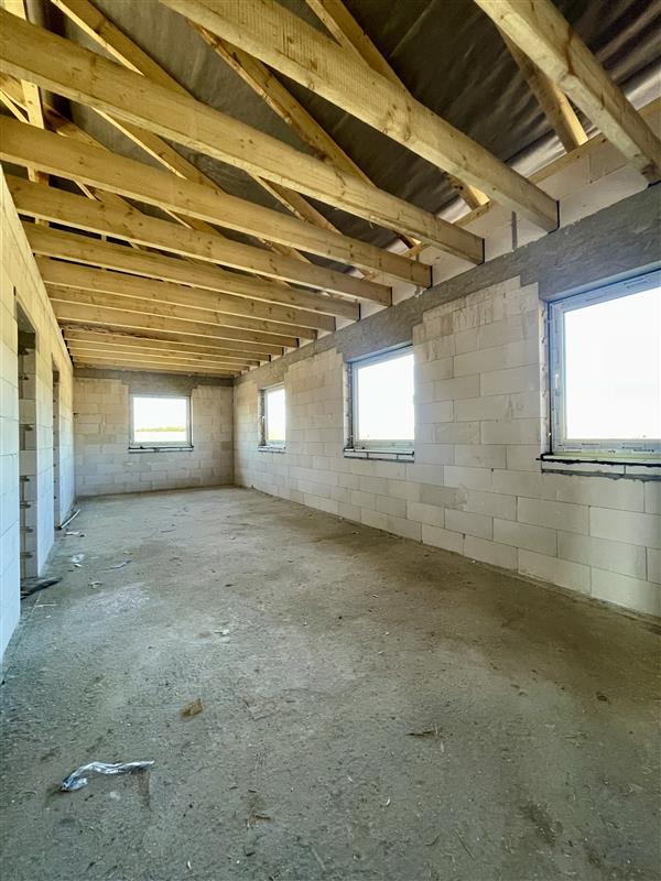 stan surowy zamknięty – materiał budowlany: Suporex, okna (PCV trzyszybowe) i drzwi zewnętrzne (techniczne) zamontowane, brama garażowa oraz dach wykonany,