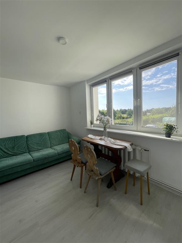 To przytulne, dwupokojowe mieszkanie położone jest na wysokim parterze w bloku mieszkalnym. Budynek dobrze utrzymany, odświeżona i ocieplona elewacja bloku. Mieszkanie zadbane, w stanie do zamieszkania, bezczynszowe - opłaty jedynie za media według indywidualnego zużycia (prąd, woda, śmieci plus opał). Ogrzewanie etażowe (piec na węgiel lub drewno znajduje się w piwnicy wraz z bojlerem do podgrzania wody). Przynależne dwie piwnice.