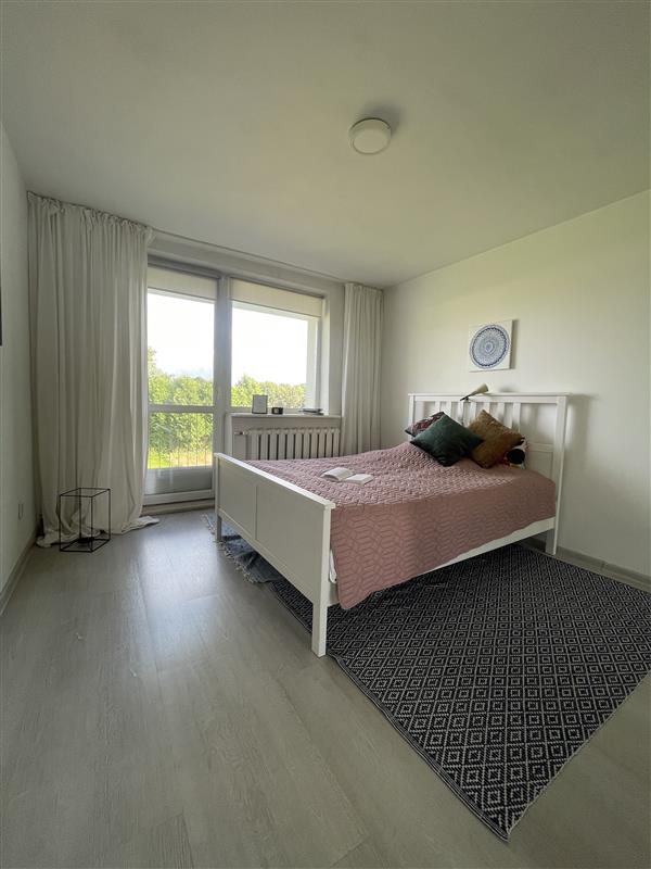 - 2 ustawne pokoje z dużą ilością naturalnego światła, w tym jeden z wyjściem na przyjemną loggię z widokiem na zieleń,