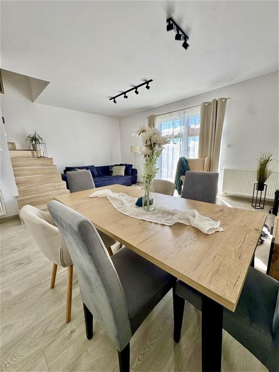 Dom oferuje bardzo funkcjonalny układ pomieszczeń oraz przyjemną, dobrze doświetloną przestrzeń dzienną. Wyjście na ogród stanowi idealne miejsce do relaksu, spotkań rodzinnych czy odpoczynku na świeżym powietrzu.