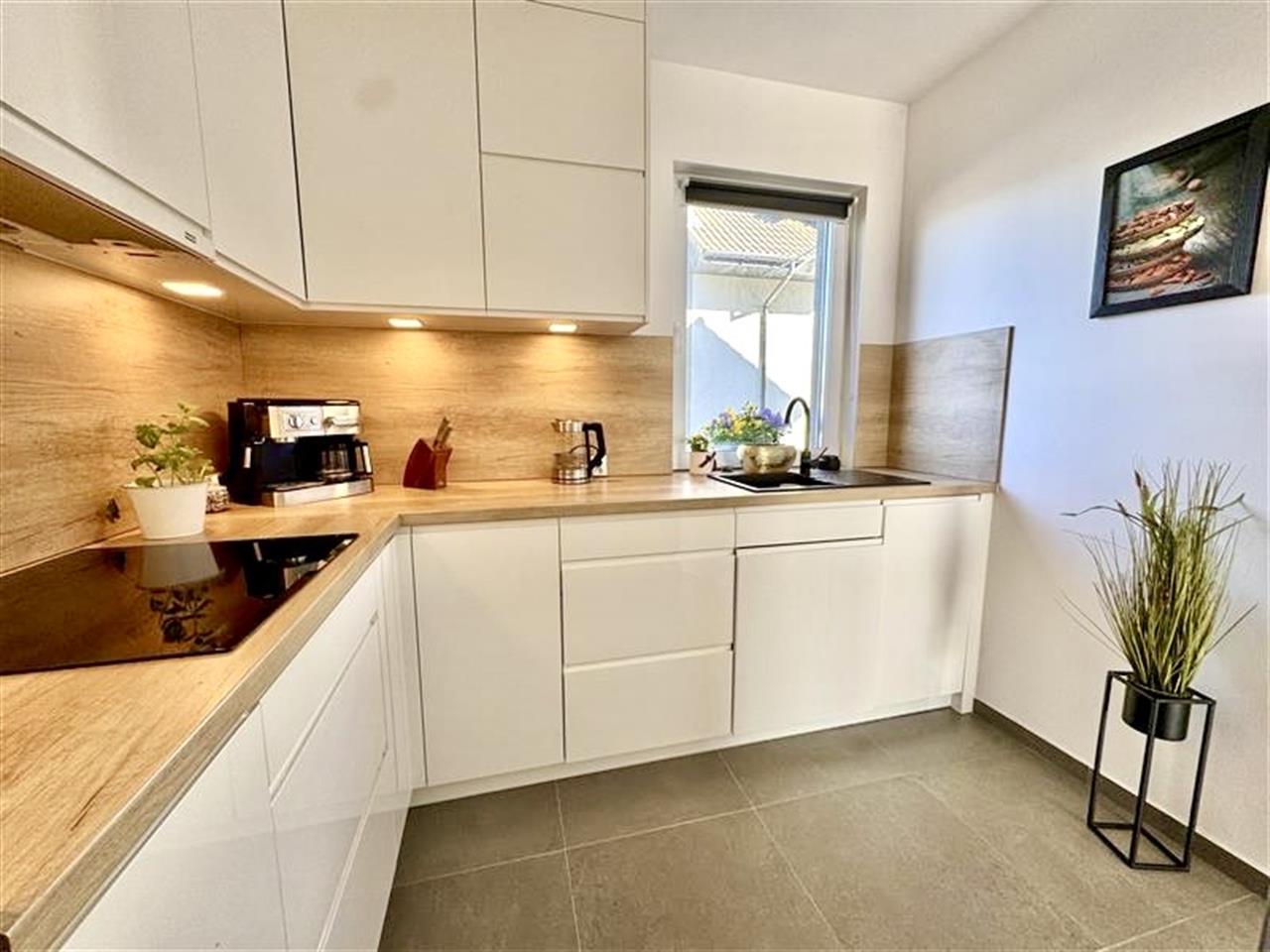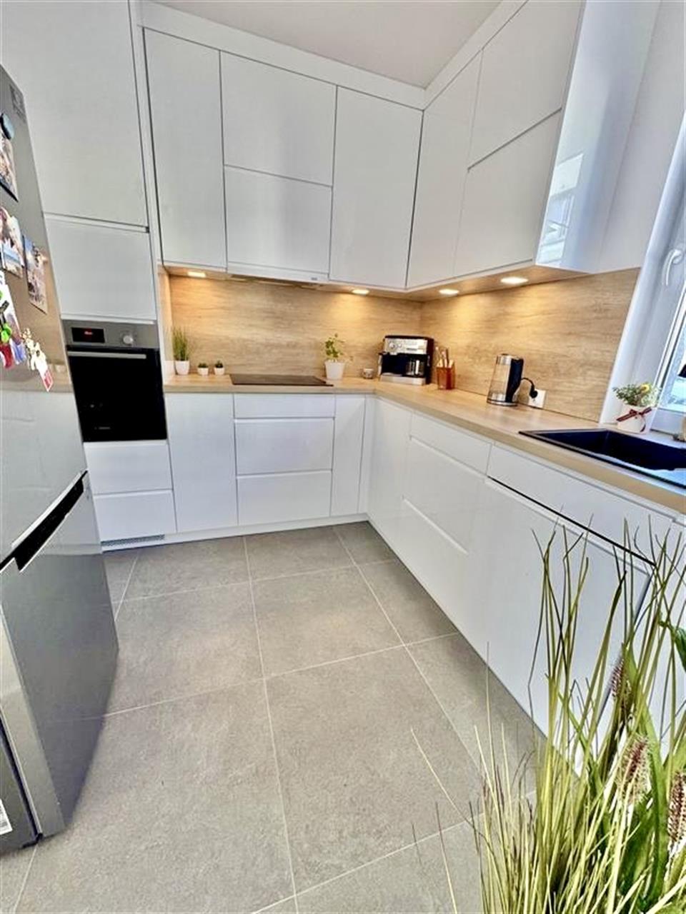 Oddzielna kuchnia (7,23m2) wyposażona w nowoczesne meble w zabudowie, które zapewniają dużo miejsca do przechowywania. Funkcjonalny układ oraz klasyczne wykończenie sprawiają, że kuchnia jest zarówno estetyczna, jak i wygodna w codziennym użytkowaniu. W skład wyposażenia wchodzi niezbędny sprzęt AGD (płyta grzewcza, piekarnik, lodówka, zmywarka oraz okap). Dzięki obecności okna wnętrze jest doskonale doświetlone i dobrze wentylowane.