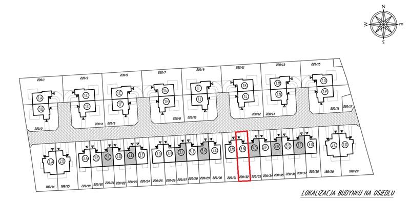 Całe osiedle obejmować będzie docelowo 40 budynków, dojazd do osiedla drogą asfaltową na osiedlu droga wewnętrzna wyłożona polbrukiem.