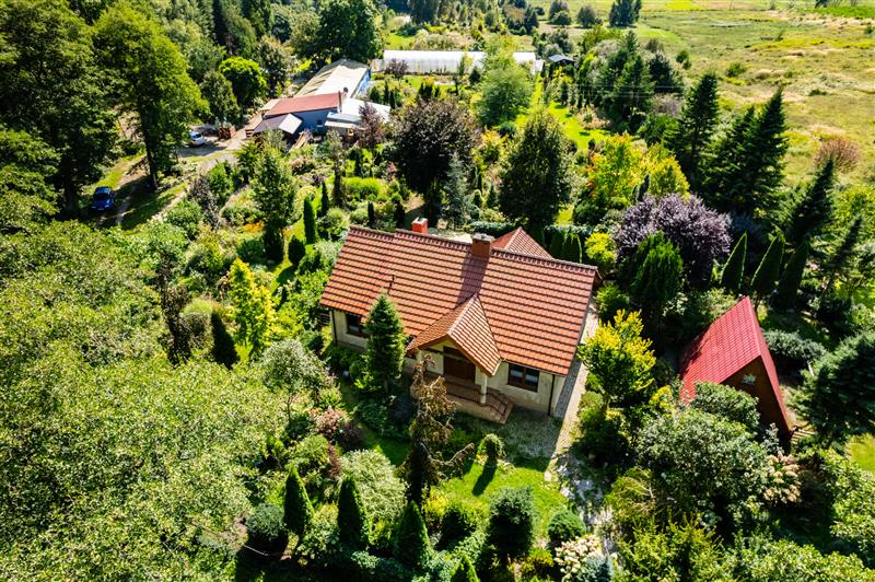 Budynek mieszkalny wybudowany metodą tradycyjną, parterowy z użytkowym poddaszem.
