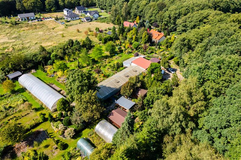 Nieruchomość składa się z czterech działek, które dotychczas funkcjonowały jako centrum ogrodnicze, co czyni ją doskonałą inwestycją z możliwością kontynuacji działalności. Na terenie znajduje się również dom jednorodzinny o powierzchni zabudowy 131 m2, idealny do zamieszkania lub do wykorzystania jako siedziba właściciela prowadzącego działalność gospodarczą.