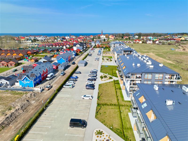 Nabywca otrzymuje nie tylko komfortowe mieszkanie, ale także jedno miejsce postojowe na zewnątrz budynku. Dodatkowym bonusem jest dostęp do zewnętrznego placu zabaw i boiska, idealnych miejsc do spędzania czasu na świeżym powietrzu., oraz zewnętrznego basenu czynnego w okresie letnim. W kompleksie apartamentowym znajduje się również restauracja, gdzie można delektować się wykwintnymi potrawami.