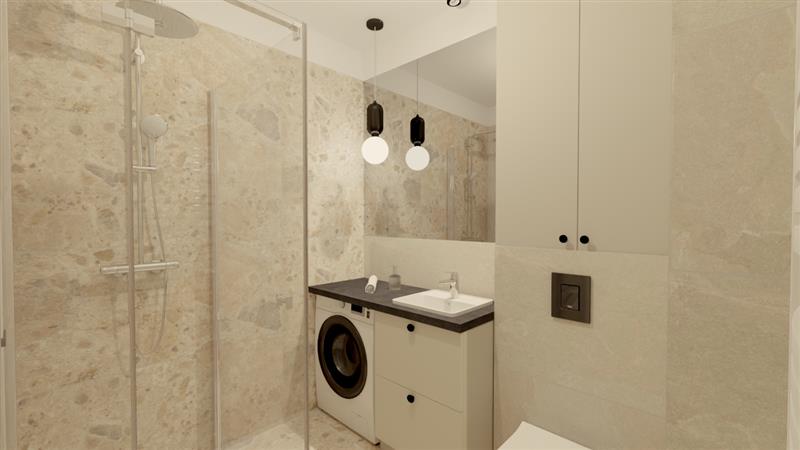 Prezentowane w ofercie mieszkanie o powierzchni 66,17m2, usytuowane jest na I piętrze, składa się z salonu z aneksem kuchennym, pokoju, łazienki oraz przedpokoju.