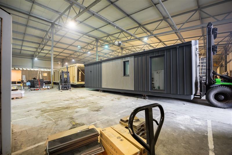 Obiekt jest obecnie wykorzystywany pod produkcję domów modułowych, co potwierdza jego praktyczną funkcjonalność oraz dostosowanie do działalności produkcyjnej i montażowej.